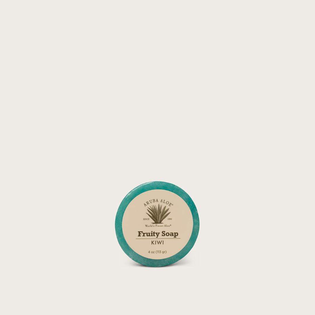 Fabriqué avec des graines de kiwi entièrement naturelles, notre savon Wild Kiwi contient de l'aloès d'Aruba et un parfum apaisant de concombre et de kiwi. Pour tous les types de peau.